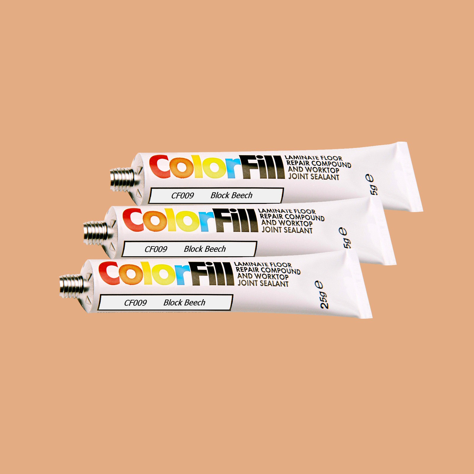 This 3 tube pack of Block Beech Colorfill CF009 worktop jointing compound is specifically formulated to seal and bond worktop joints and mitres, it will provide a strong near invisible join, resistant to heat, moisture ingress and household cleaners. This pack of 3 tubes is sufficient to seal up to four standard 40mm thick worktop joints.