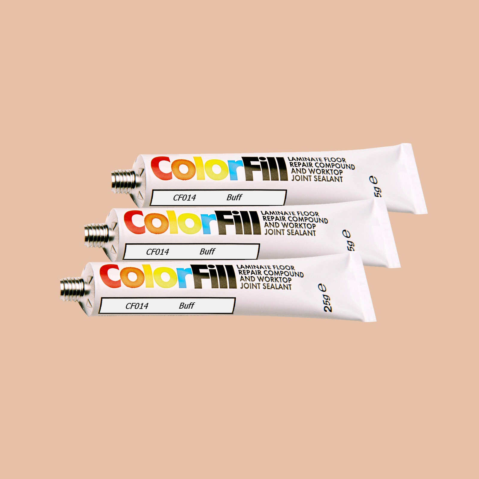 This 3 tube pack of Buff Colorfill CF014 worktop jointing compound is specifically formulated to seal and bond worktop joints and mitres, it will provide a strong near invisible join, resistant to heat, moisture ingress and household cleaners. This pack of 3 tubes is sufficient to seal up to four standard 40mm thick worktop joints.