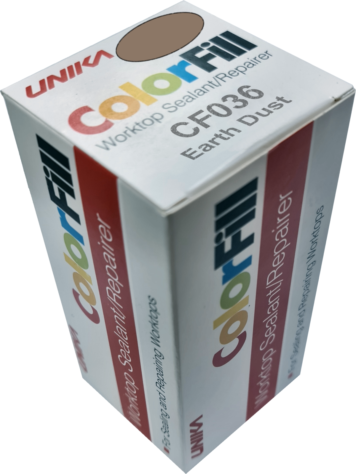 Unika Earth Dust ColorFill is the No.1 joint sealant and filler used for the installation and repair of laminated surfaces, it is premixed and ready to use and sets within an hour, once cured Earth Dust colour matched sealant will provide a long-lasting durable finish. Earth Dust ColorFill is an essential product for the furniture and installation industry, you can use it to fill gaps and plug holes in all laminate melamine, and most plastic surfaces.