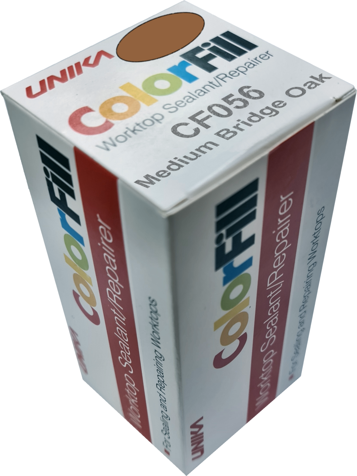 Unika Medium Bridge Oak ColorFill is the No.1 joint sealant and filler used for the installation and repair of laminated surfaces, it is premixed and ready to use and sets within an hour, once cured Medium Bridge Oak colour matched sealant will provide a long-lasting durable finish. Medium Bridge Oak ColorFill is an essential product for the furniture and installation industry, you can use it to fill gaps and plug holes in all laminate melamine, and most plastic surfaces.