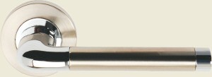 This Argo lever on rose set has a satin nickel & polished chrome finish and are designed and manufactured to the highest standards and supplied with bolt through fixings, grub screw and split spindle to provide a secure and smooth operation. Argo levers are the perfect choice for contemporary applications. Complimenting Argo Keyhole escutcheon, Argo Euro profile escutcheon and Argo bathroom thumb turn are also available.