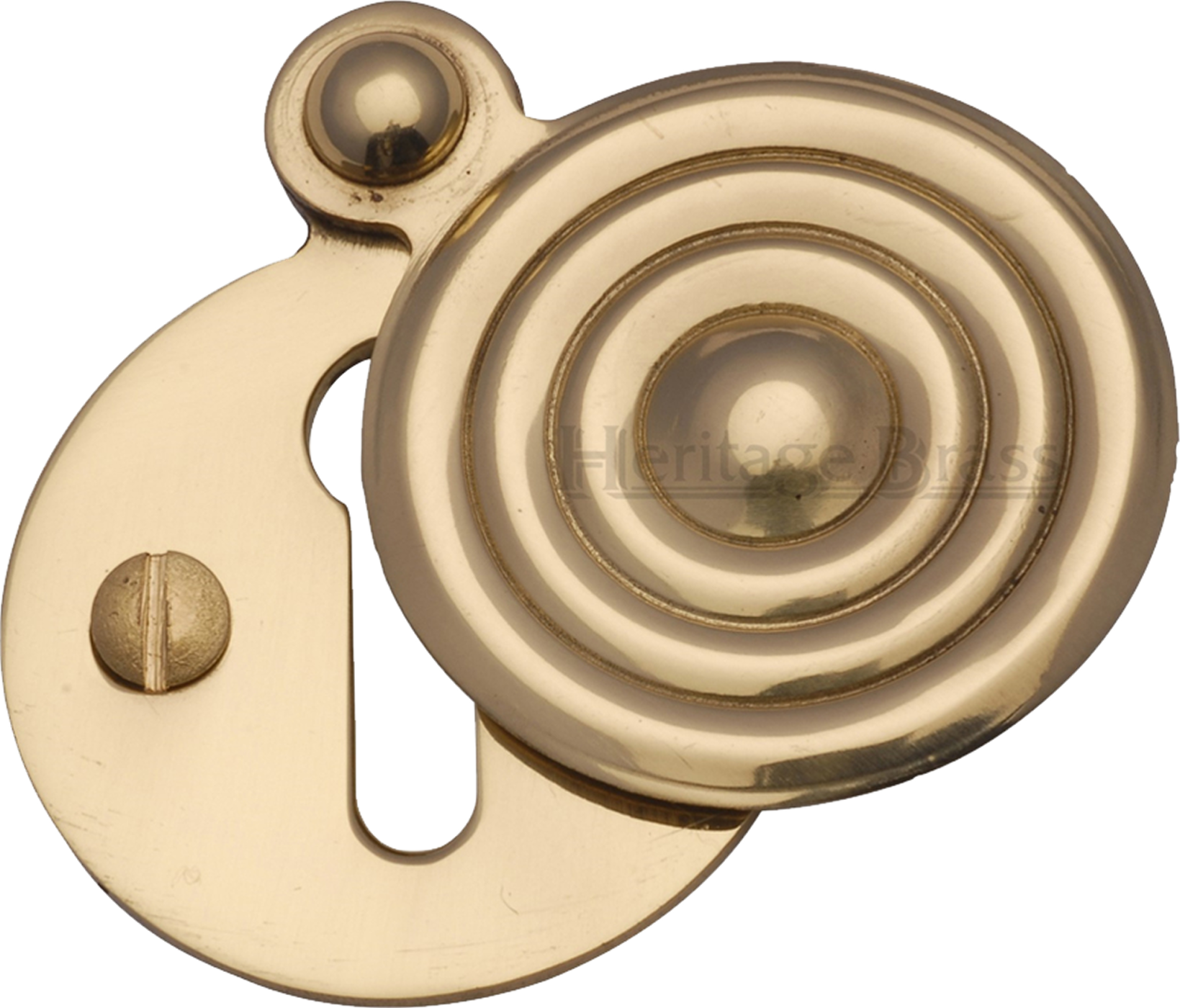 This premium UK quality Victorian key hole cover plate escutcheon with a reeded cover design from the Heritage collection in a superior bright gold polished brass finish to compliment other polished brass door furniture. This reeded covered escutcheon is for standard UK Key mortice dead locks and sashlocks and features a swing cover to add privacy, protect your locks, and help reduce draughts.