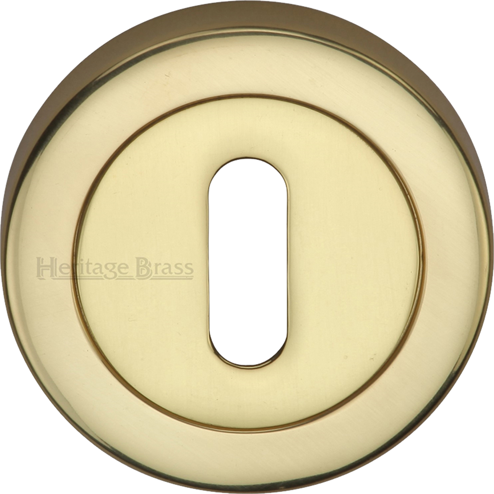 This premium UK quality standard key hole escutcheon from the Heritage collection in a superior bright gold lacquered polished brass finish that will compliment other polished brass door furniture, and is suited to standard UK mortice dead lock and sash lock key holes. The two piece clip-on concealed fixing system provides a modern plush look.
