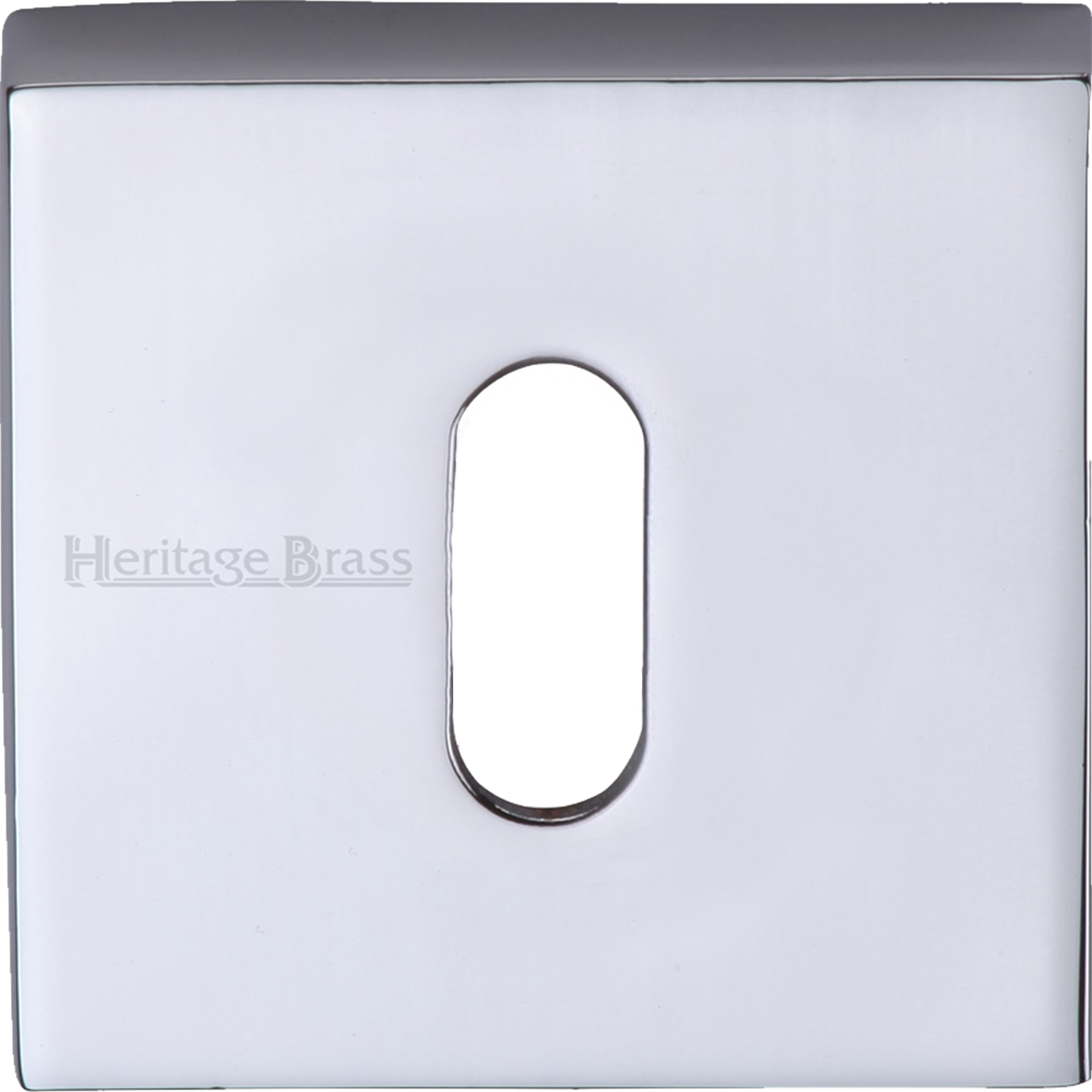 This premium UK quality square key hole escutcheon from the Heritage collection in a superior bright silver polished chrome finish to compliment other polished chrome door furniture. This escutcheon is for standard UK mortice dead lock and sash lock key holes and features a clip-on concealed fixing system for a plush look.