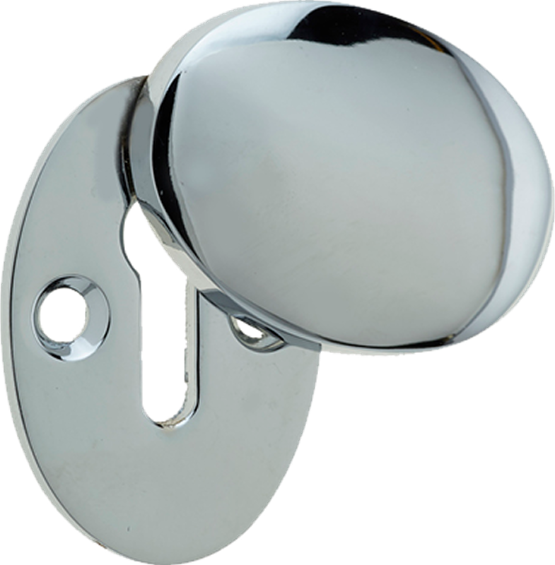 This polished chrome covered oval escutcheon measures 45mm high by 32mm wide, with a 4mm thickness (projection from door face) and is supplied in single units with screws.