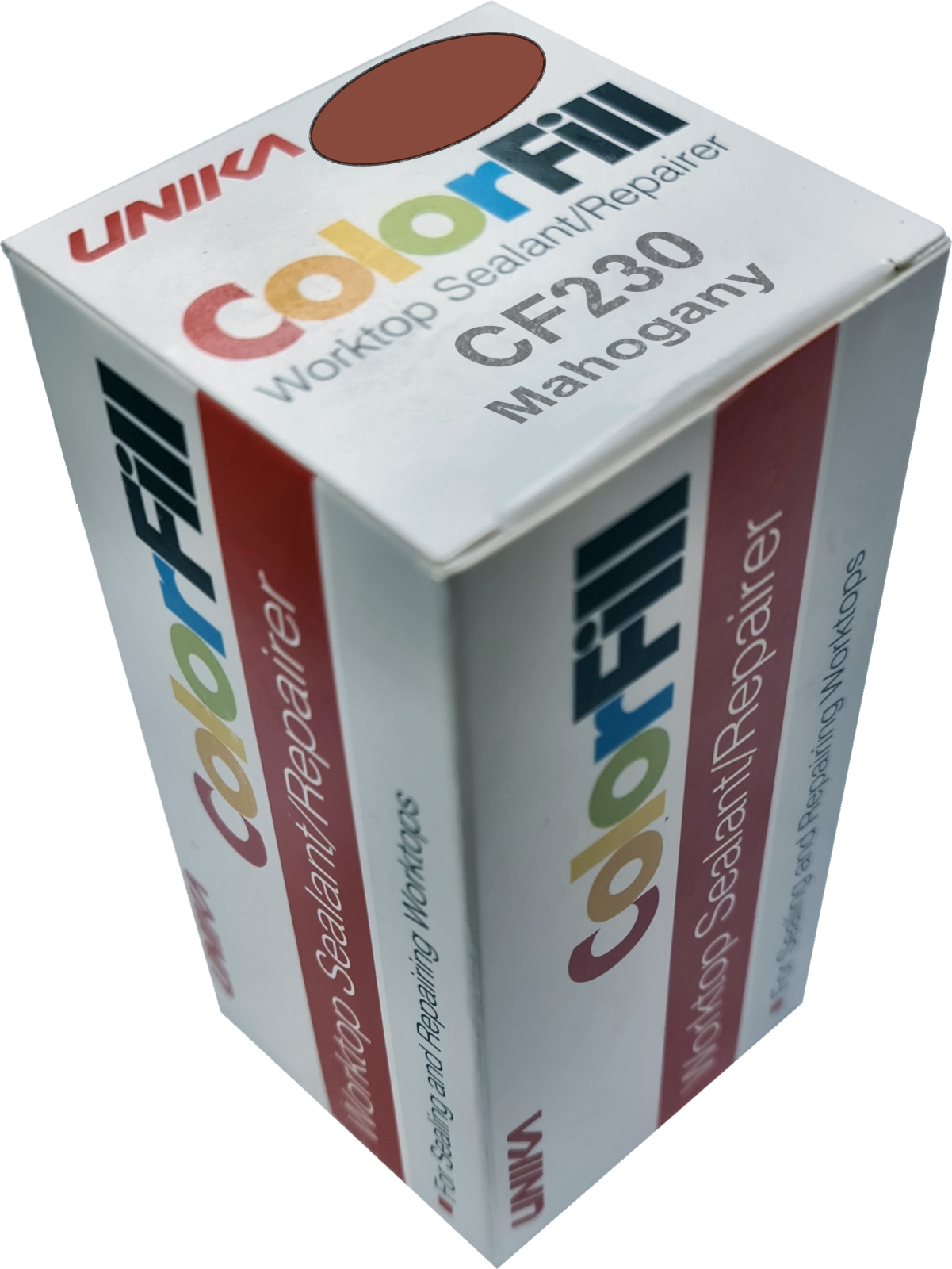 Unika Mahogany ColorFill is the No.1 joint sealant and filler used for the installation and repair of laminated surfaces, it is premixed and ready to use and sets within an hour, once cured Mahogany colour matched sealant will provide a long-lasting durable finish. Mahogany ColorFill is an essential product for the furniture and installation industry, you can use it to fill gaps and plug holes in all laminate melamine, and most plastic surfaces.