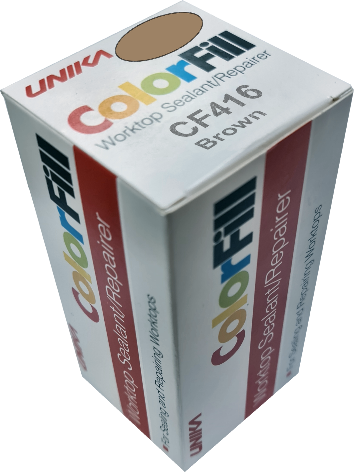 Unika Brown ColorFill is the No.1 joint sealant and filler used for the installation and repair of laminated surfaces, it is premixed and ready to use and sets within an hour, once cured Brown colour matched sealant will provide a long-lasting durable finish. Brown ColorFill is an essential product for the furniture and installation industry, you can use it to fill gaps and plug holes in all laminate melamine, and most plastic surfaces.