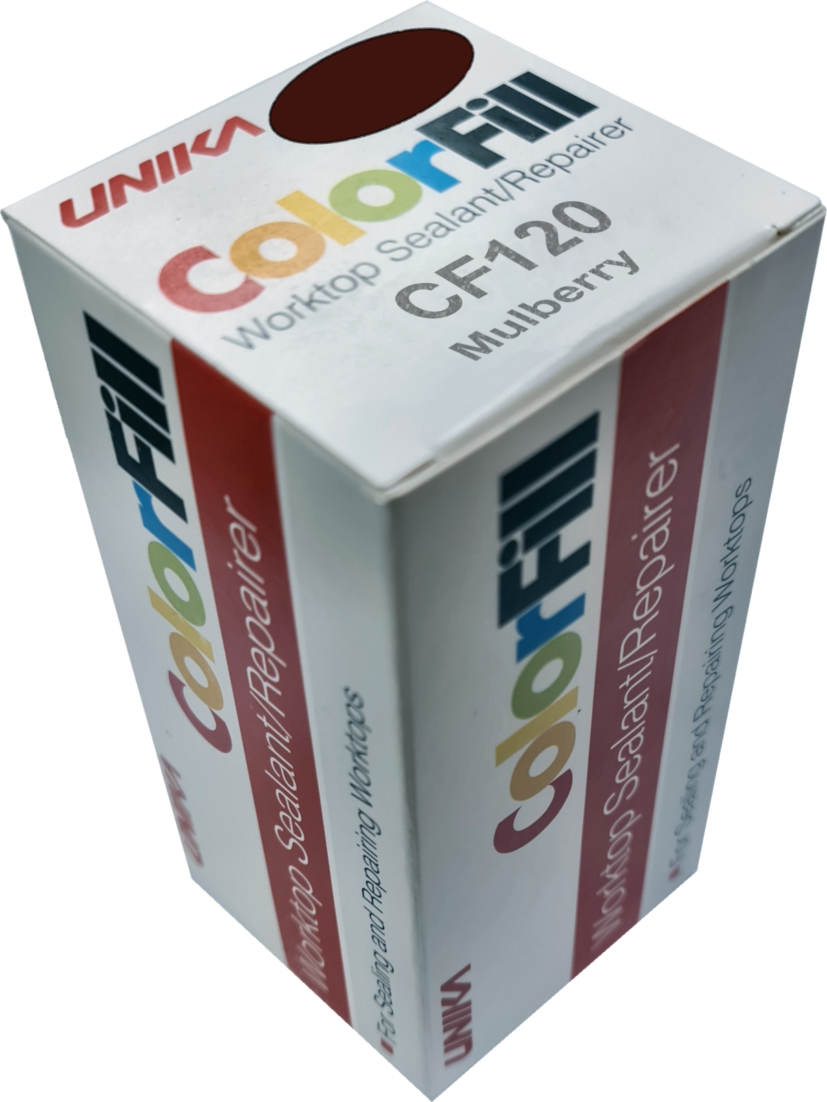 Unika Mulberry ColorFill is the No.1 joint sealant and filler used for the installation and repair of laminated surfaces, it is premixed and ready to use and sets within an hour, once cured Mulberry colour matched sealant will provide a long-lasting durable finish. Mulberry ColorFill is an essential product for the furniture and installation industry, you can use it to fill gaps and plug holes in all laminate melamine, and most plastic surfaces.