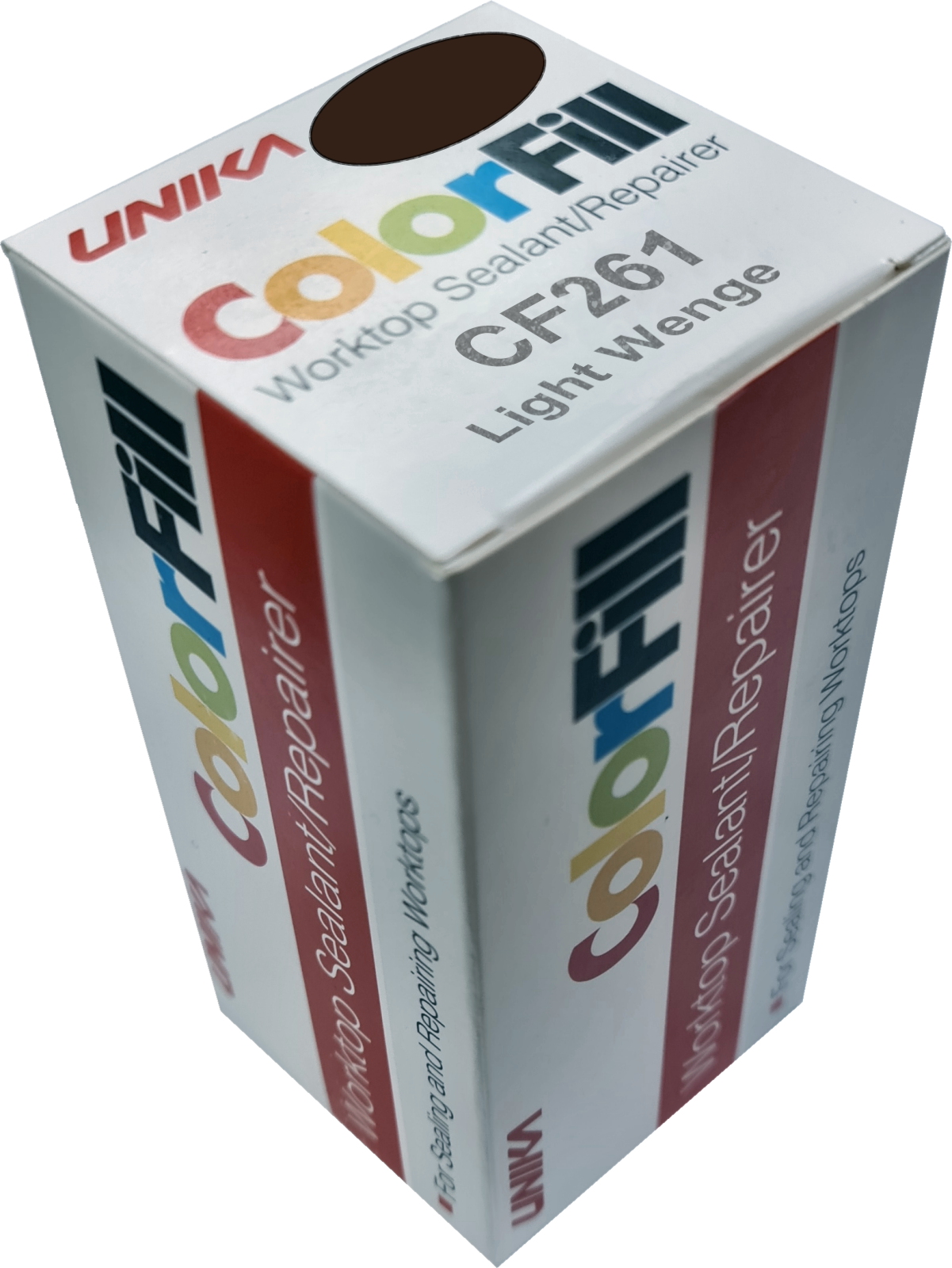 Unika Light Wenge ColorFill is the No.1 joint sealant and filler used for the installation and repair of laminated surfaces, it is premixed and ready to use and sets within an hour, once cured Light Wenge colour matched sealant will provide a long-lasting durable finish. Light Wenge ColorFill is an essential product for the furniture and installation industry, you can use it to fill gaps and plug holes in all laminate melamine, and most plastic surfaces.