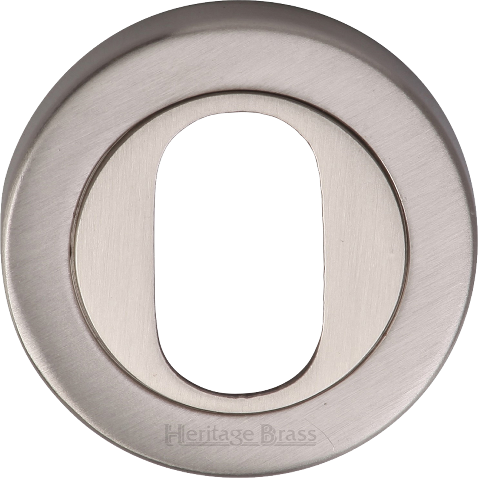 This premium UK quality oval cylinder lock escutcheon from the Heritage collection in a superior lacquered brushed satin nickel finish that provides a warm silver finish when compared to standard satin chrome is suited to oval profile cylinder locks, and features a two piece clip-on concealed fixing system for a modern plush look.
