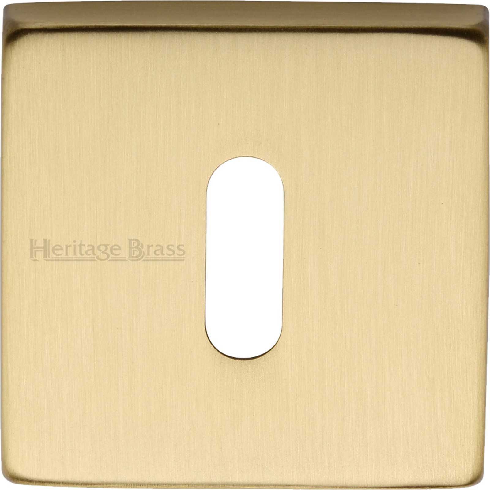This premium UK quality square key hole escutcheon from the Heritage collection in a superior lacquered brushed satin brass finish that provides contemporary look for traditional properties and architecture. This escutcheon is for standard UK mortice dead lock and sash lock key holes and features a clip-on concealed fixing system for a plush look.