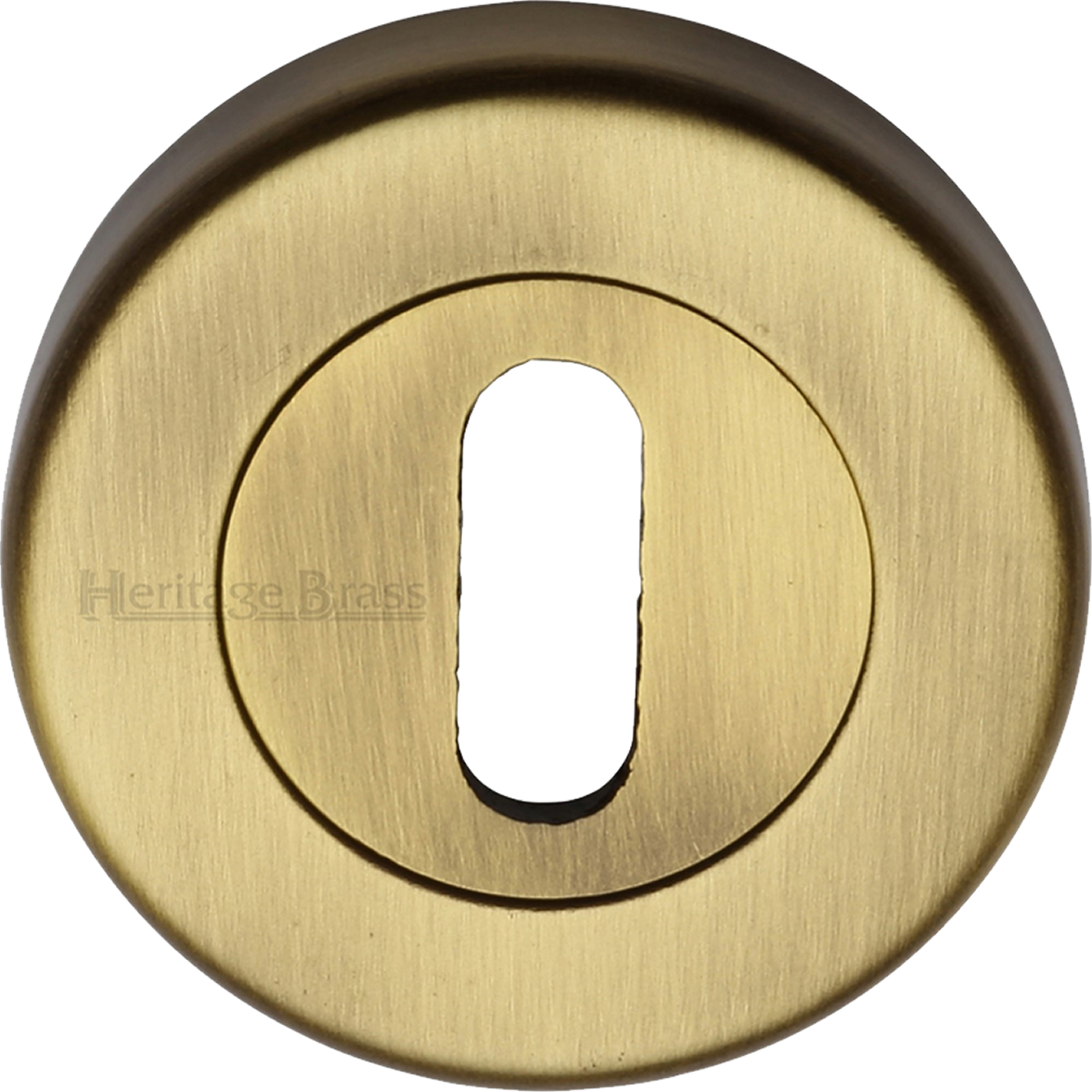 This premium UK quality standard key hole escutcheon from the Heritage collection in a superior lacquered brushed antique brass finish, that provides an aged antique brass finish ideal for period properties and architecture. This escutcheon is suited to standard UK mortice dead lock and sash lock key holes. The two piece clip-on concealed fixing system provides a modern plush look.