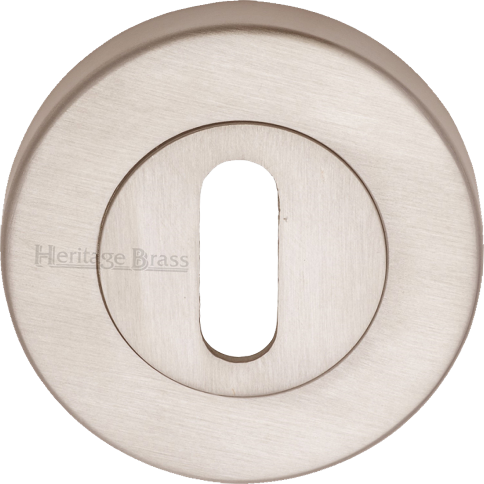 This premium UK quality standard key hole escutcheon from the Heritage collection in a superior lacquered brushed satin nickel finish that provides a warm silver finish when compared to standard satin chrome. This escutcheon is suited to standard UK mortice dead lock and sash lock key holes. The two piece clip-on concealed fixing system provides a modern plush look.