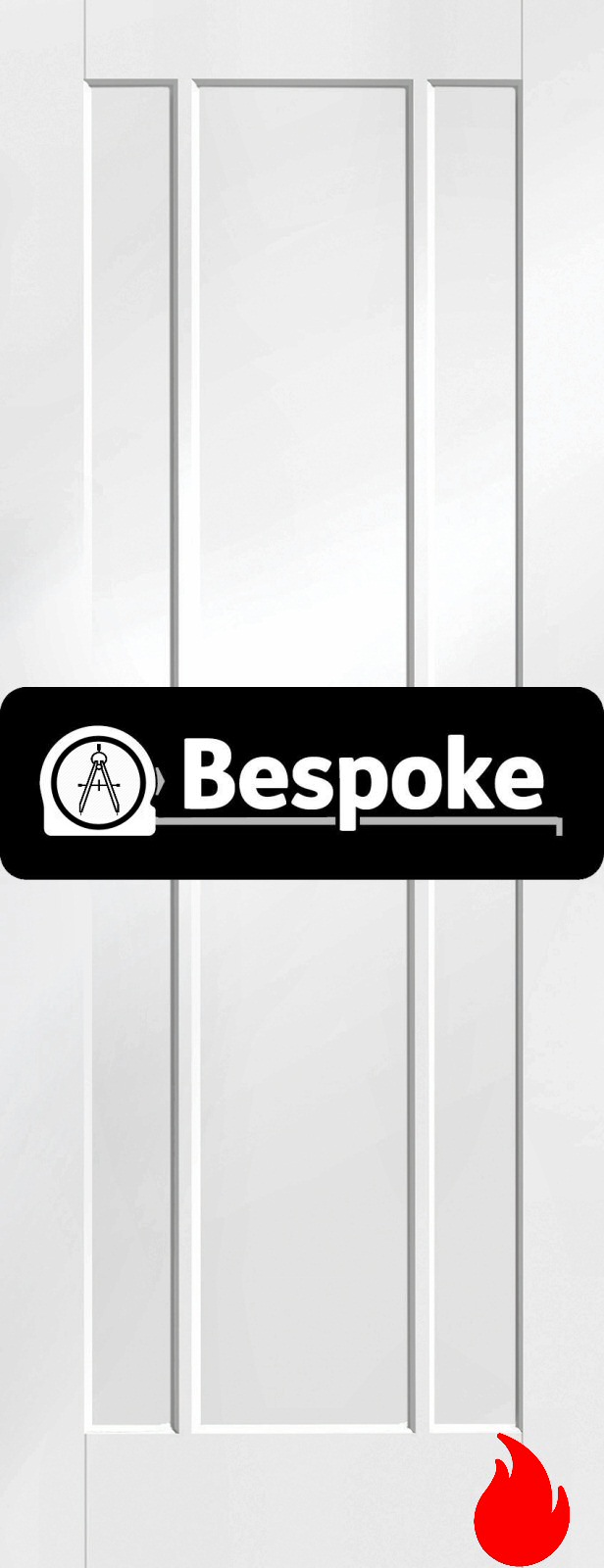 This made-to-measure white primed Worcester FD30 Fire door is a 3-panel design featuring integrated slender full-length mullions and chamfered edge beading, with an expansive flat central panel. This Worcester fire door is a striking, yet timeless design, adaptable to both traditional and modern interior styles.