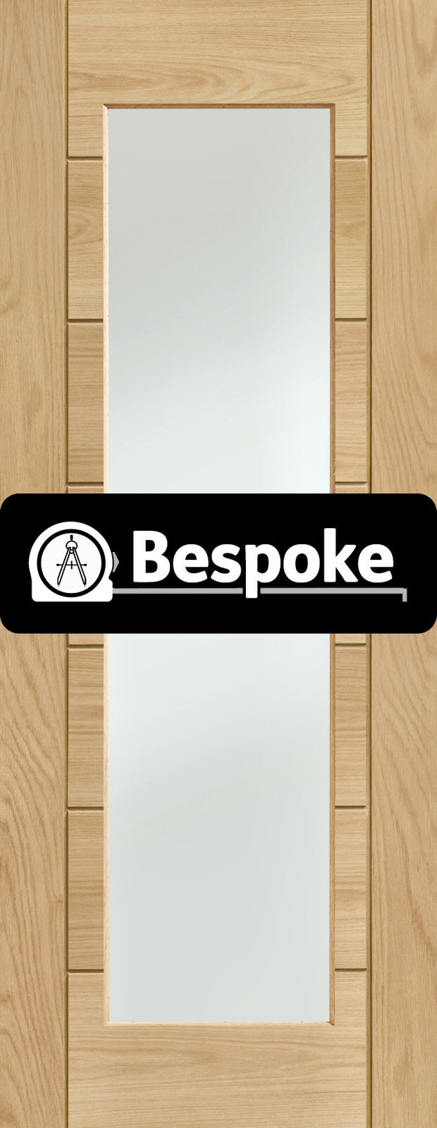 This custom size 1-lite clear glazed Palermo Essential oak door is supplied pre-glazed with clear safety glass, and unfinished ready for your choice of solvent based; wood stain finish, clear lacquer, or our recommendation of the Osmo door oil treatment in a choice of 'raw' finish for a matt open grain look, or the 'clear' for a satin open grain effect, either one will provide a natural looking finish that will show the real beauty of the oak and provide a tactile touch. Please refer to our Door Handling & Finishing Guidelines.