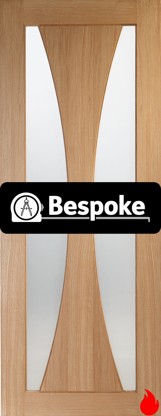 We can manufacture an interior Verona clear glazed FD30 fire door, up to 2400mm high and up to 1200mm wide, subject to maximum size restraints. Constructed with engineered timber components and clear toughened Pyro safety glass, it features 11mm solid oak lippings that allow a few millimeters to be trimmed from each edge for installation purposes.